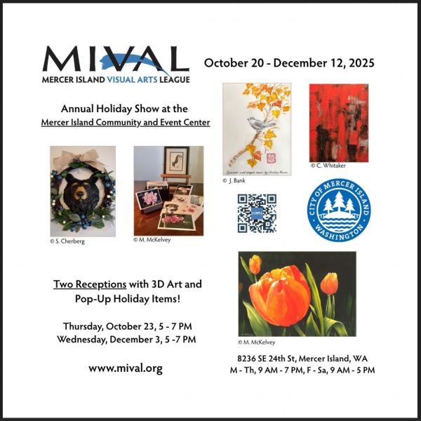 Stop by the Mercer Island Community & Event Center to view works by visual artists on display at the Mercer Island Gallery. Exhibits at this indoor space are free and open to the public, and several exhibits are mounted each year.